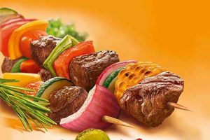 Мякоть задней, передней ноги и спинной части баранины, зачищенную от грубых сухожилий, разрезать на куски в форме кубиков или квадратов весом по 30—40 г и замариновать. Для этого куски мяса посолить, посыпать перцем, мелко нарезанным или натертым на терке репчатым луком и зеленью петрушки, смочить винным уксусом или лимонным соком, перемешать, уложить плотно в неокисляющуюся посуду и оставить на 4—6 часов в холодном месте.